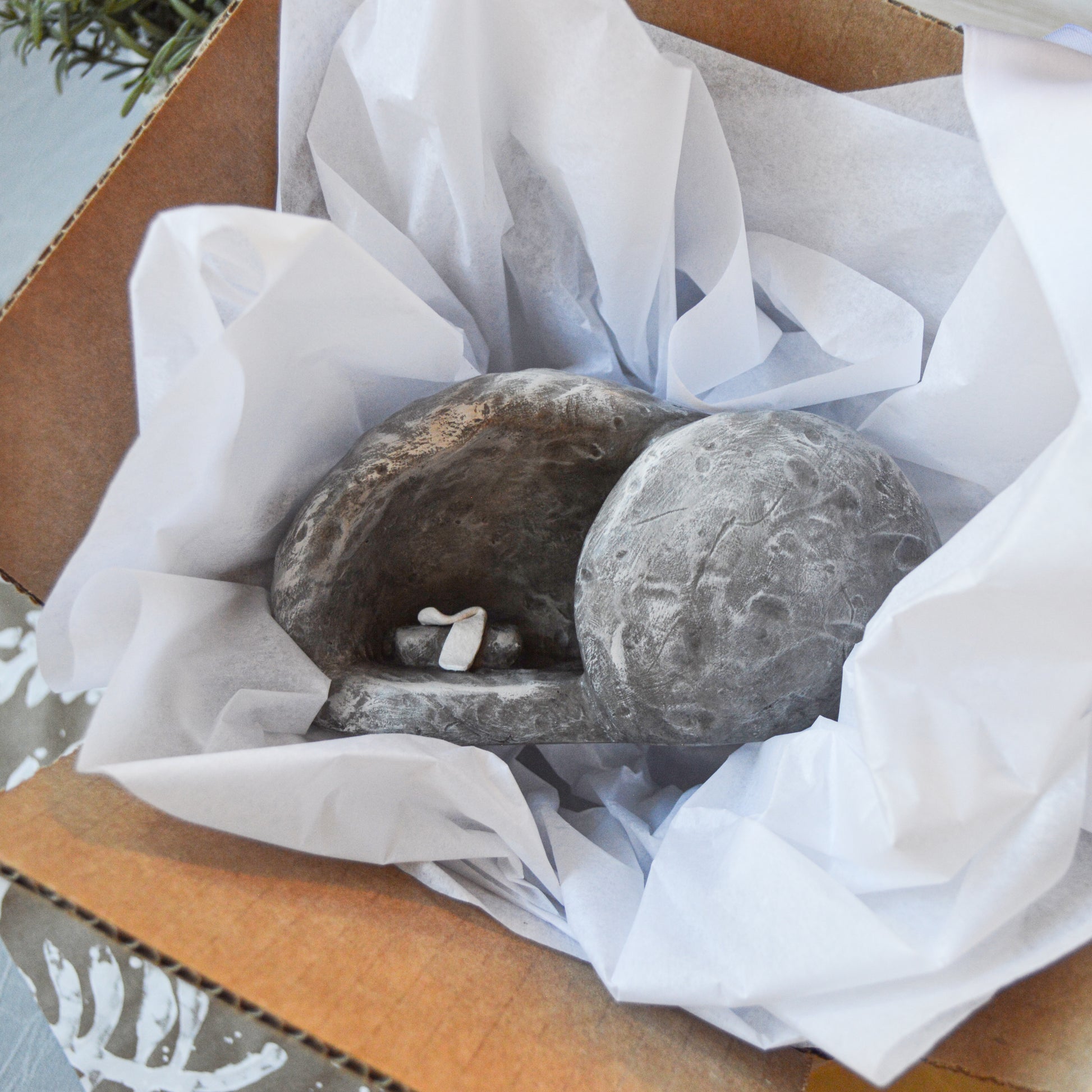 • Packaging: Each "He Is Risen" sculpture will arrive to you gift wrapped, just like in the photos, wrapped with hand-stamped paper and a white satin bow. Each piece is signed on the bottom with my signature, date of creation and title of the piece.