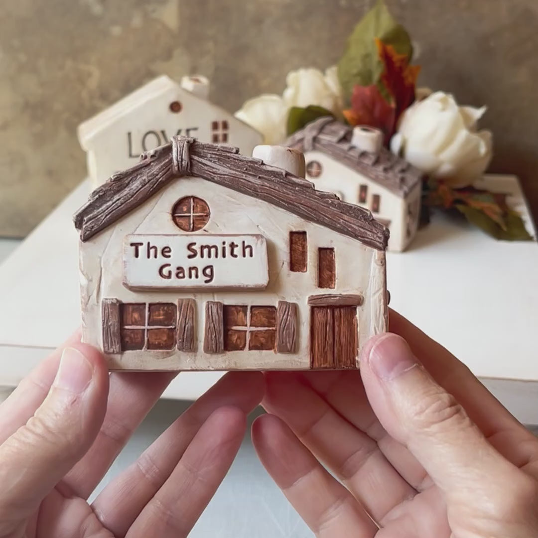 Add a personal touch to your home decor with this handmade custom clay house. Each miniature house is sculpted from natural clay and features a personalized name plaque, making it a perfect gift for housewarmings, weddings, or a special keepsake for your own family. Display it on a shelf, mantel, or desk to bring charm and warmth to any space.